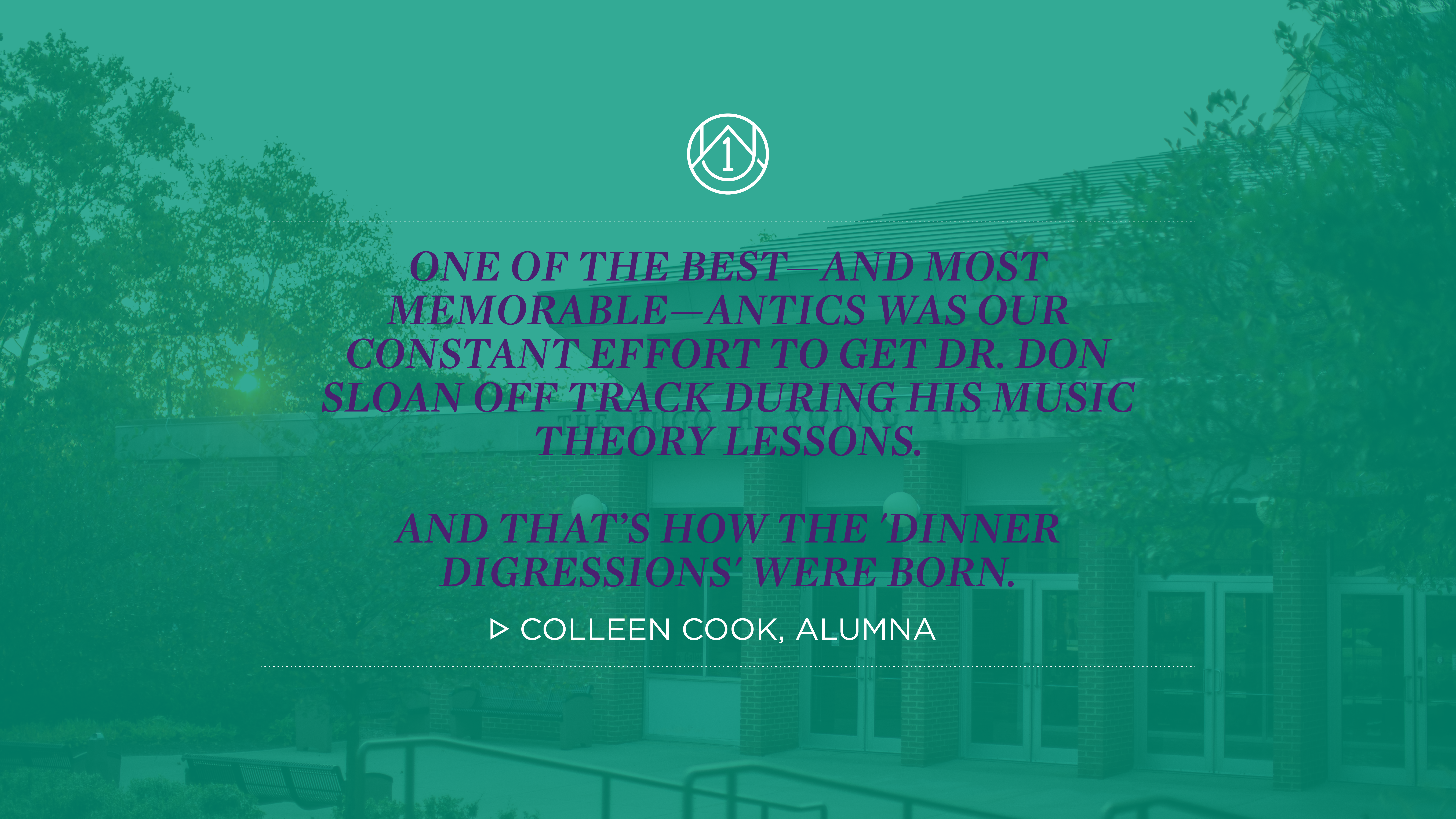 Dr. Sloan is an incredibly intelligent individual—he was well known among students and faculty for his short run on Jeopardy!—and has seemingly endless knowledge about a wide range of topics. If our class was running behind on our assignments, or simply just feeling overwhelmed with life, we’d start asking him questions to get him off topic and keep him off topic—pushing our big assignments out if we could. Because he’s such a caring man, he’d do his best to answer us, but because he’s good at his job, he eventually put a stop to it and said, “Listen, I want to be here for all of you and answer your questions, but we’re never going to get through the curriculum if we keep this up. Tell you what: let’s have dinner in convo once a month, and you can ask me anything you want, for as long as you want.” And so, the “Dinner Digressions” were born. Monthly, we’d dine together and dive deep into a wealth of topics. To this day—more than a decade since we’ve graduated—we all still get together pretty regularly with Dr. Sloan and the other faculty when they’re around.