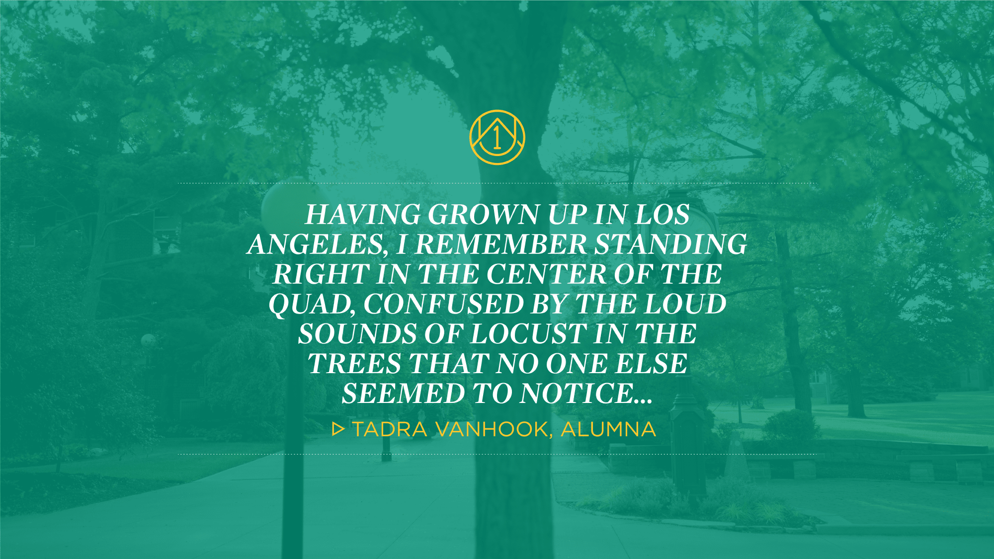 For me, it was many little things. I am from Los Angeles, California (born and raised). I graduated from Morningside High School in the rough and tough city of Inglewood. At Ashland, I remember standing right in the center of the Quad, confused by the loud sounds of locust in the trees that no one seemed to notice. I remember the feeling when that first flake of snow touched my face. I remember the amazement my sister and I shared when the snow became heavy as we sledded to class in the cold. And I remember the poetry… Ashland is where I found my love of poetry. I’ll never forget the astonishing ice sculptures. Ashland is my beautiful winter. Los Angeles is my home, where I am now raising my family. But Ashland, for me, is happiness, peace. Ashland is what I always thought life could be. Ashland, amazingly, has four seasons. I remember the first time I saw the true color of fall. Even now, if I’m having a stressful day, I can sit back, close my eyes, think about Ashland and feel relaxed.