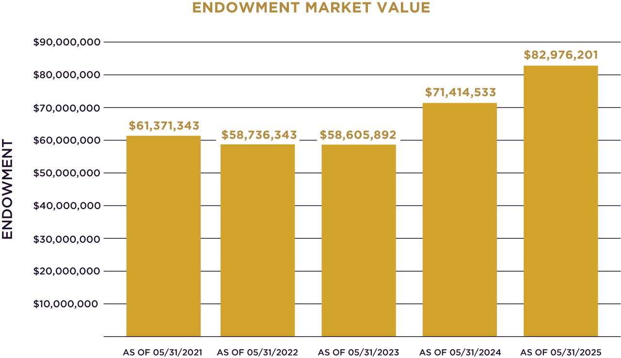 Ashland’s endowment continues to strengthen the foundation for the future. Over the past fiscal year, it grew by more than $11 million, reaching $82.9 million, a meaningful step toward our $100 million goal. This growth reflects the confidence of those who believe in Ashland’s long-term impact. Through these investments, we meet today’s needs while building permanent resources that sustain scholarships, deepen faculty excellence and expand opportunity for generations to come. Every contribution adds momentum, ensuring Ashland’s mission endures far into the future.